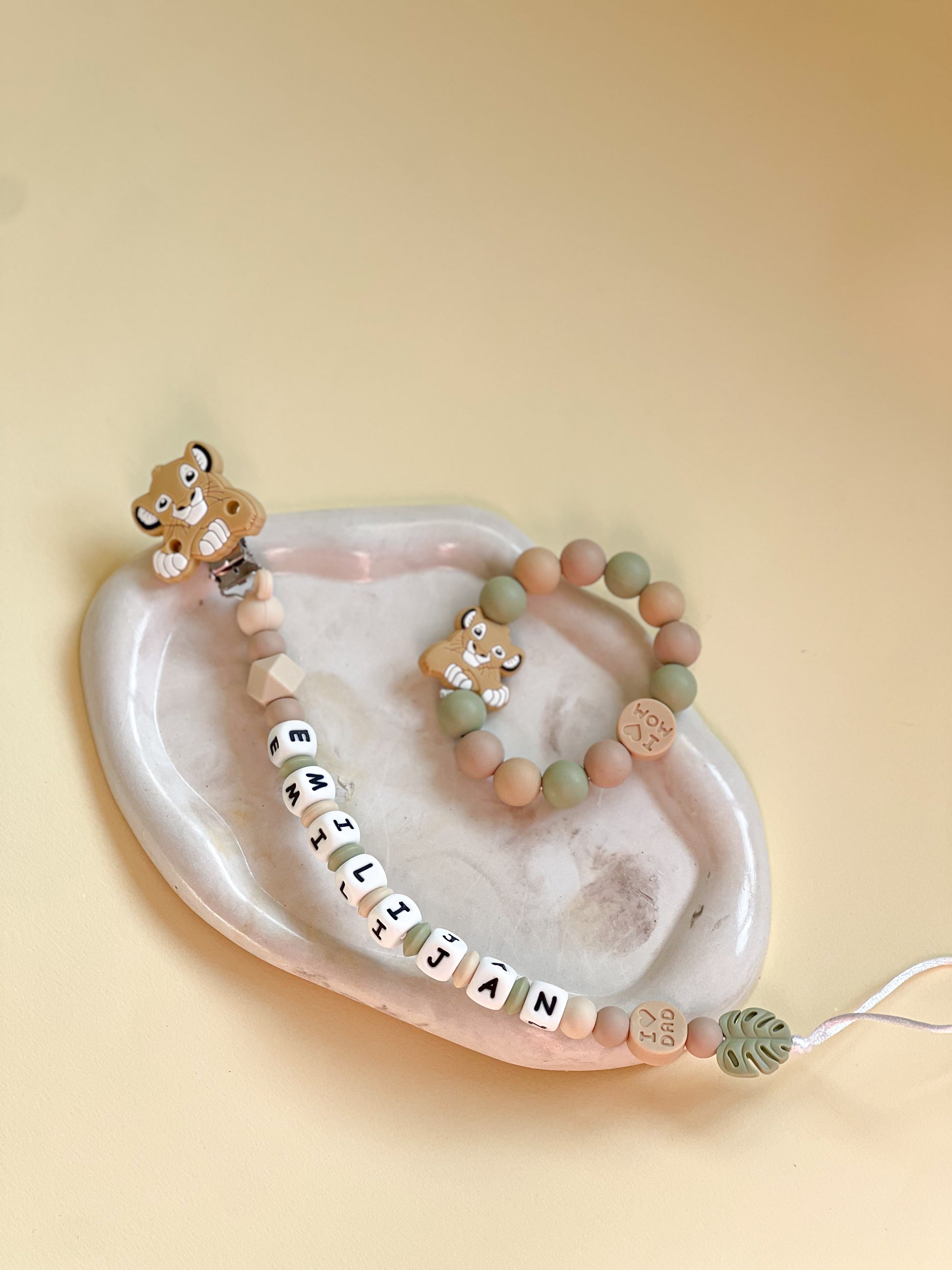 Savršena kombinacija praktičnosti i uspomene. Naš silikonski set uključuje lančić za cuclu sa imenom vaše bebe i silikonsku glodalicu sa datumom rođenja. Izrađen od visokokvalitetnog, sigurnog silikona koji je bezbedan za grickanje, ovaj set je idealan za olakšavanje perioda nicanja zubića, dok ujedno čuva jedinstvene trenutke vašeg deteta. Dodajte lični pečat i sačuvajte uspomene na poseban način