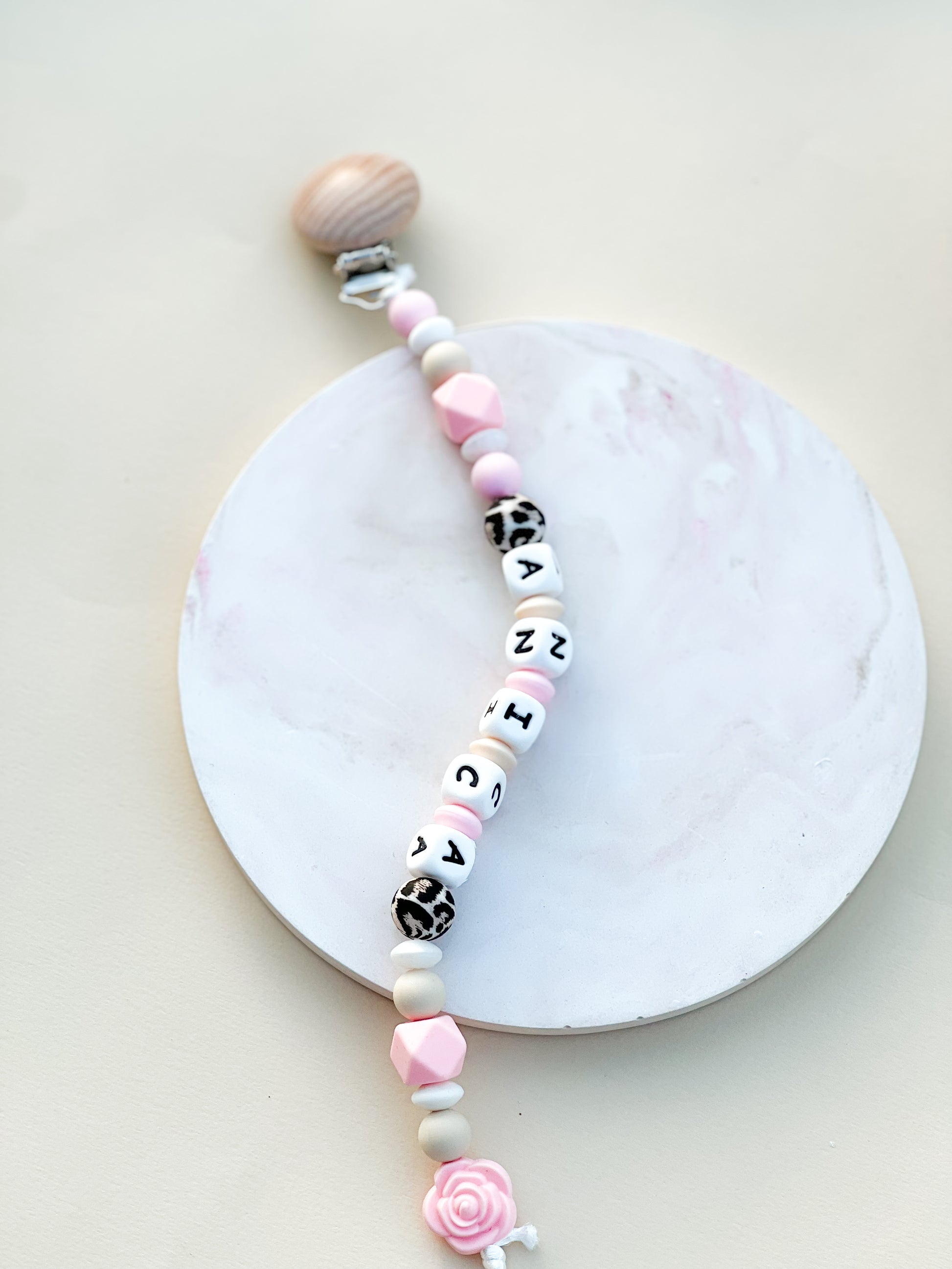 Naš lančić sa imenom deteta, ukrašen okruglom silikonskom klipsom, pažljivo je ručno izrađen sa ljubavlju prema svakom detalju.