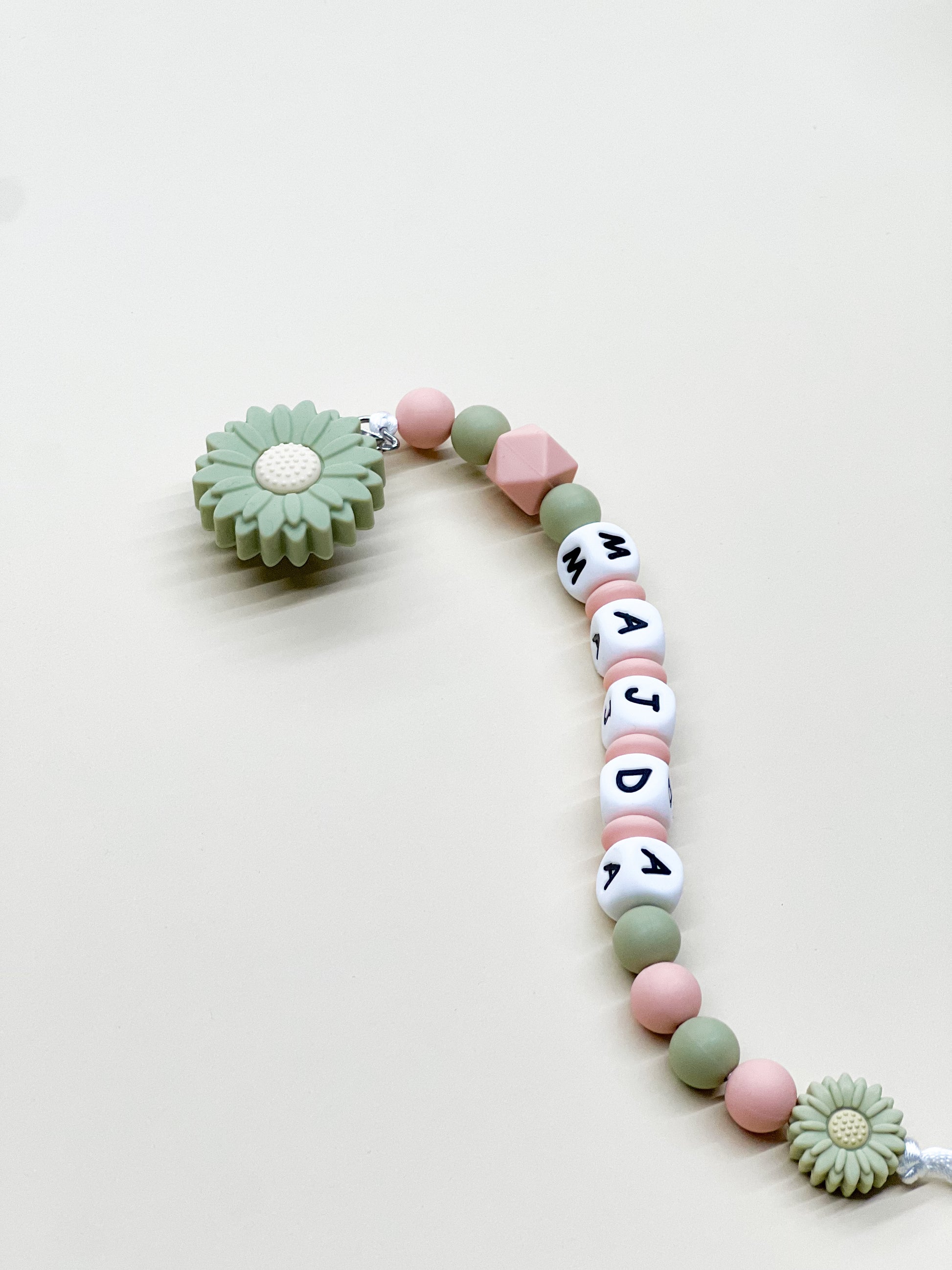 Naš lančić sa imenom deteta, ukrašen okruglom silikonskom klipsom, pažljivo je ručno izrađen sa ljubavlju prema svakom detalju.