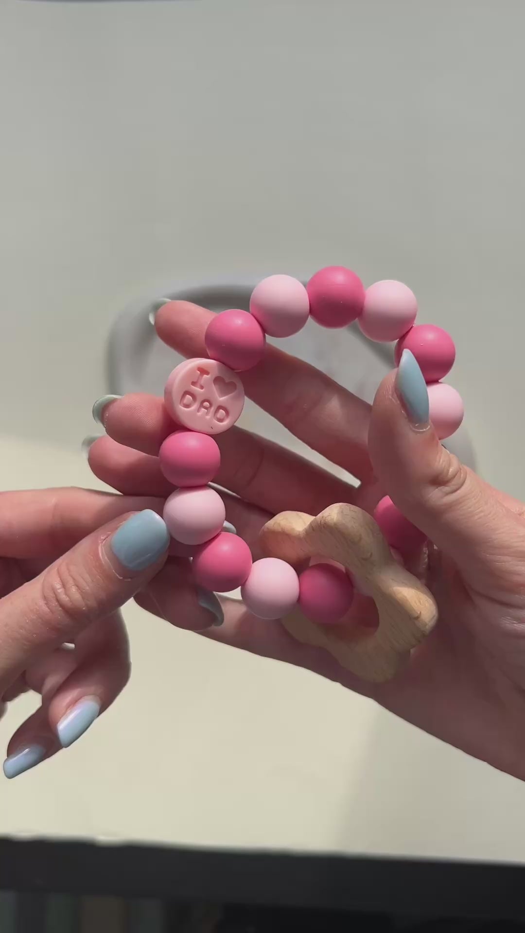 Silikonske perle i bukovo drvo čine savršenu kombinaciju. Mekani silikon umiruje osetljive desni, dok tvrđe drvo donosi nove senzacije koje vaša beba može istraživati tokom perioda nicanja zuba. Svaka glodalica je dizajnirana da bude lako uhvatljiva za bebu, pomažući u razvoju motoričkih veština