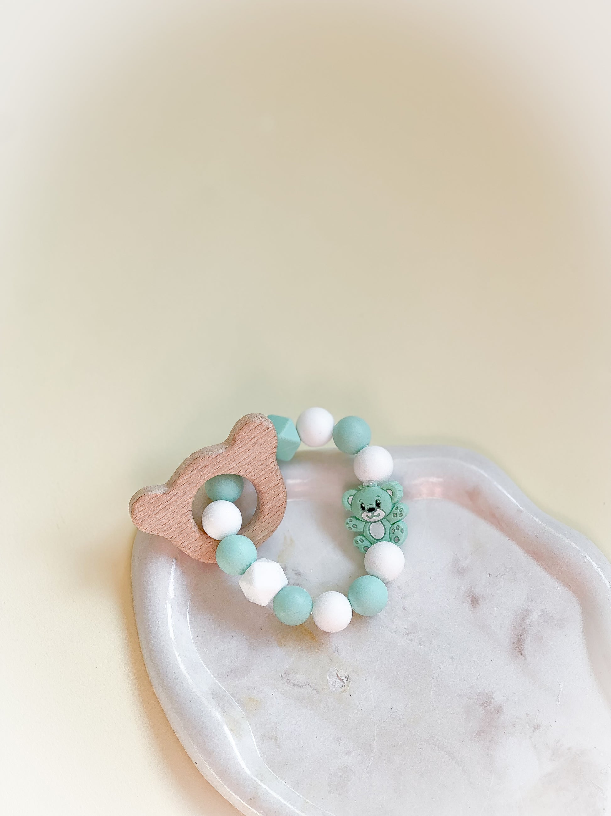 Silikonske perle i bukovo drvo čine savršenu kombinaciju. Mekani silikon umiruje osetljive desni, dok tvrđe drvo donosi nove senzacije koje vaša beba može istraživati tokom perioda nicanja zuba. Svaka glodalica je dizajnirana da bude lako uhvatljiva za bebu, pomažući u razvoju motoričkih veština