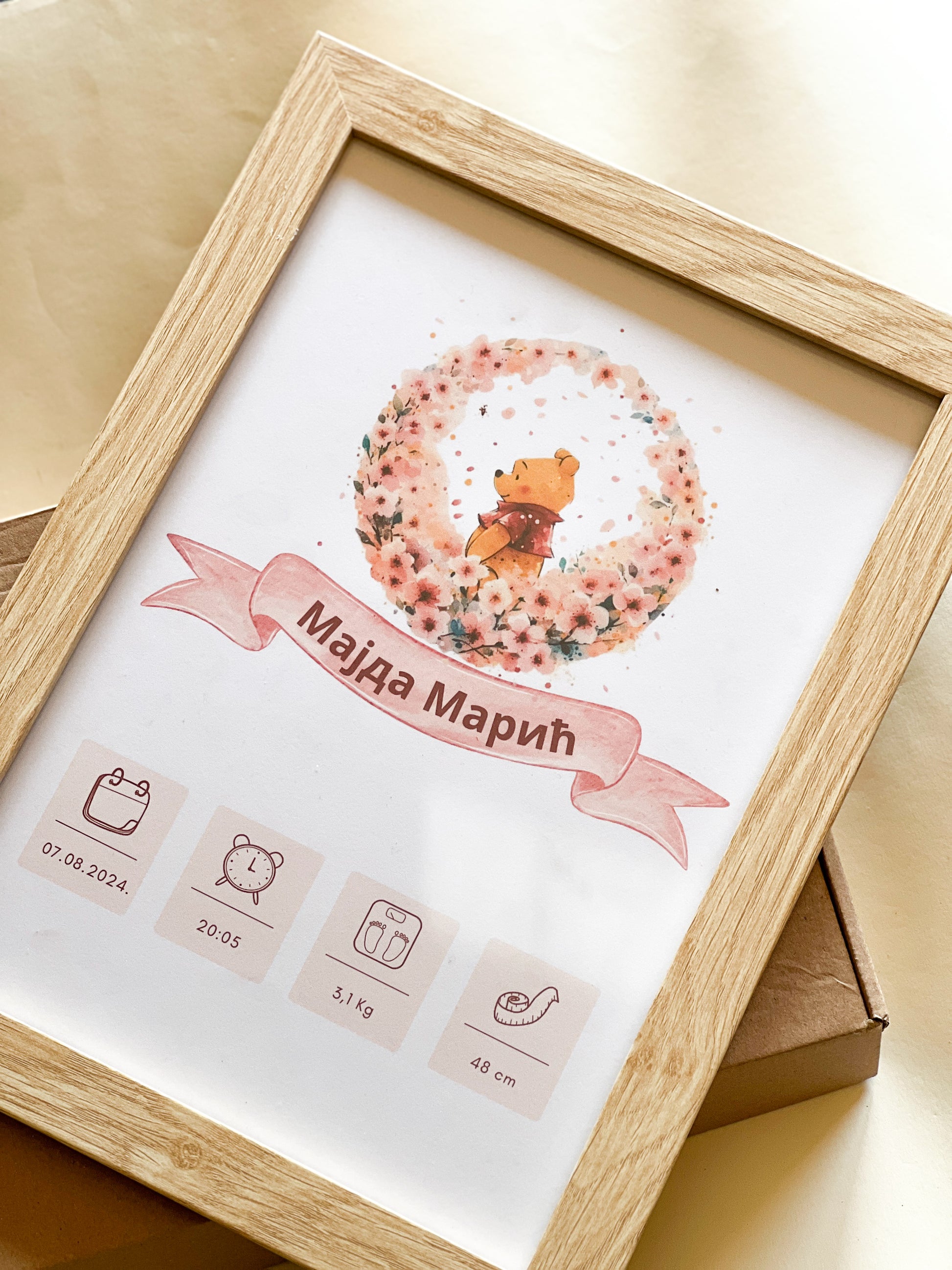 Poster je savršen poklon za buduće roditelje, kao i divan način da sačuvate uspomenu na rođenje svog deteta. Sa nežnim bojama i detaljima, karta rođenja donosi toplinu i ljubav u svaki prostor.