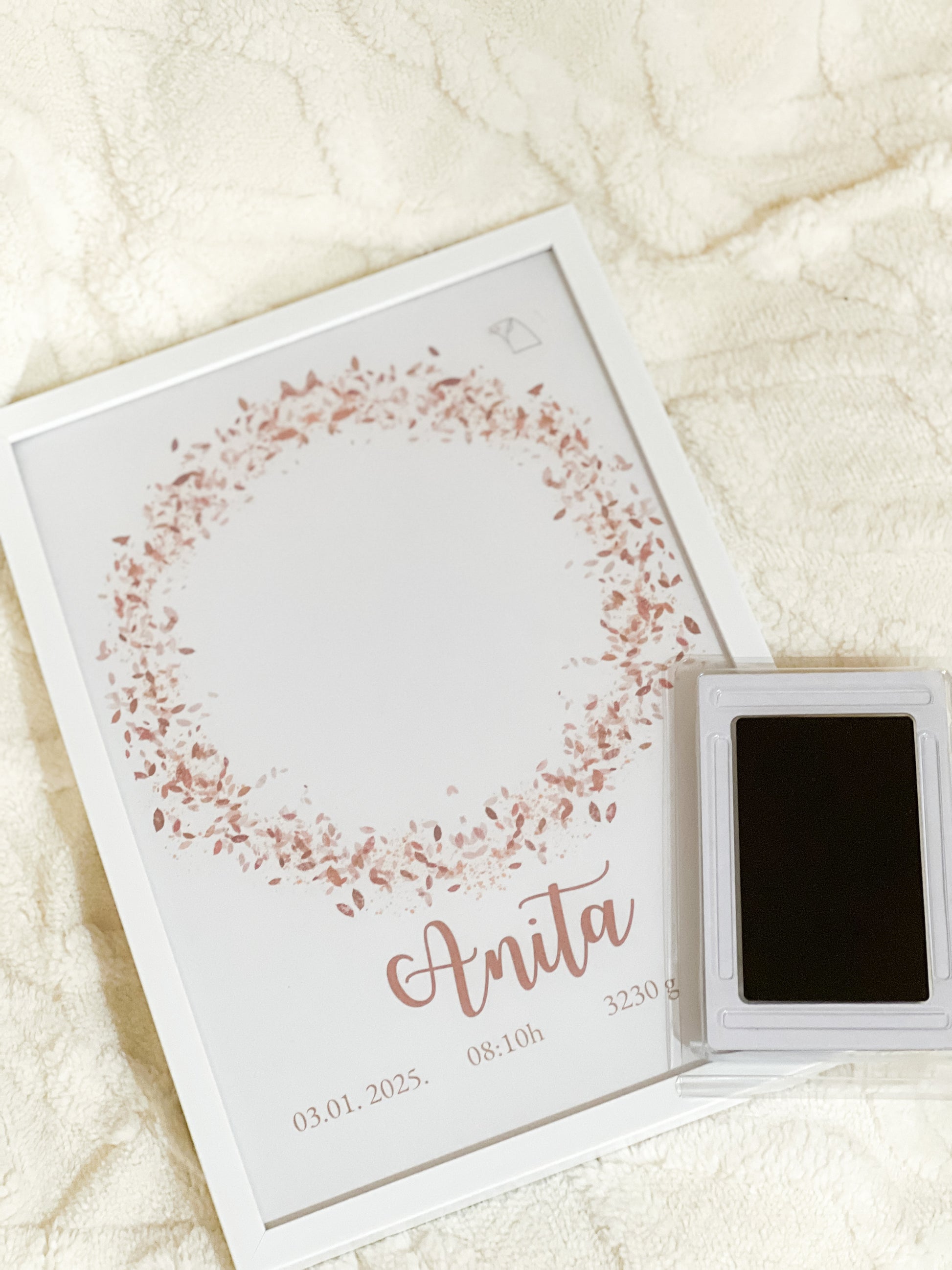 Ovaj posebni poster sa pečatom za otisak stopala savršen je način da sačuvate nezaboravan trenutak iz bebinog života. Uključuje prostor za personalizovane podatke o rođenju, poput imena, datuma, vremena, težine i visine, kao i mesto za otisak stopala vašeg mališana. Kroz nežne ilustracije, poster će postati trajna uspomena na prvi dan života vašeg deteta i lep ukras za dečiju sobu.