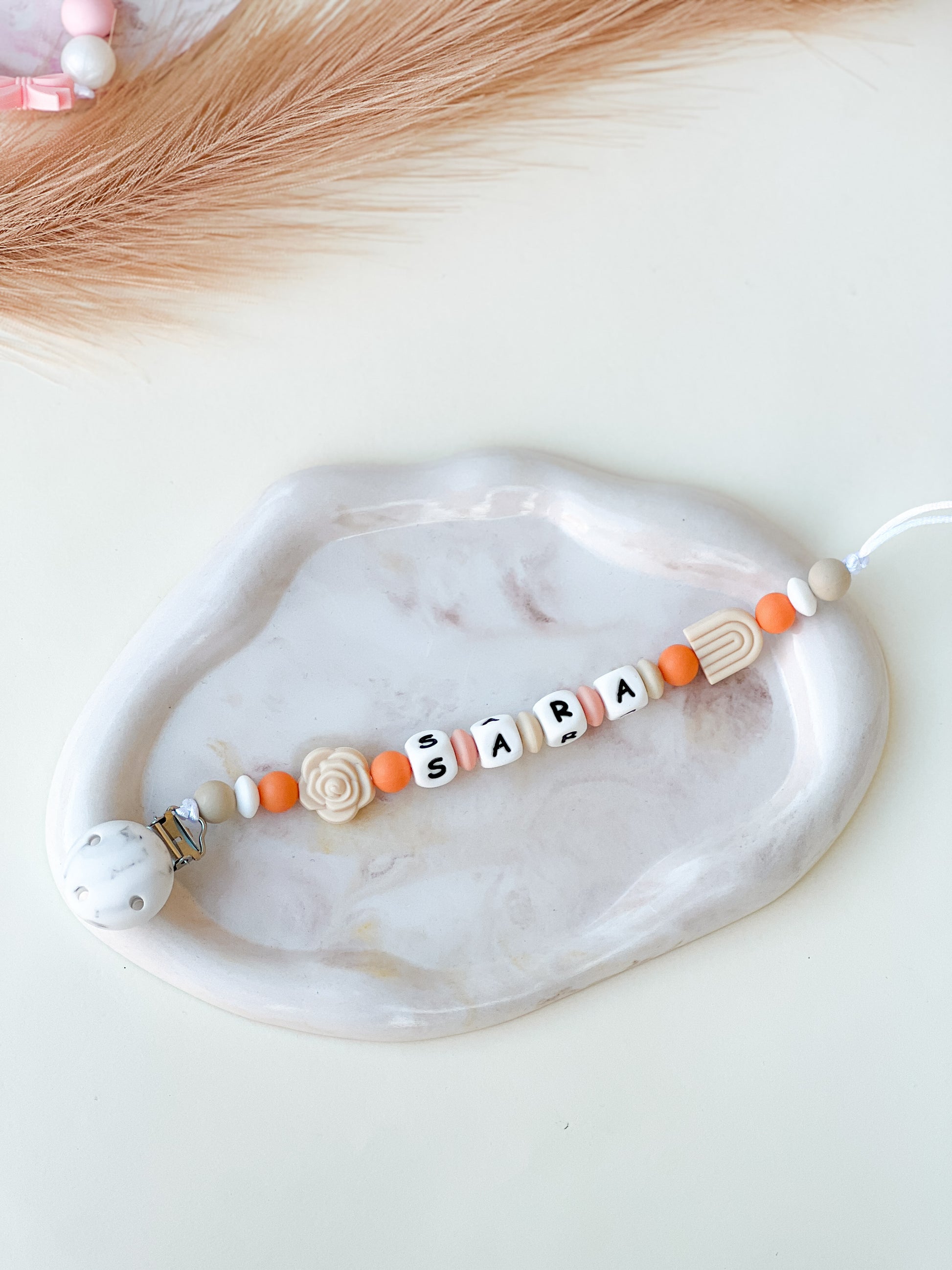Naš lančić sa imenom deteta, ukrašen okruglom silikonskom klipsom, pažljivo je ručno izrađen sa ljubavlju prema svakom detalju.
