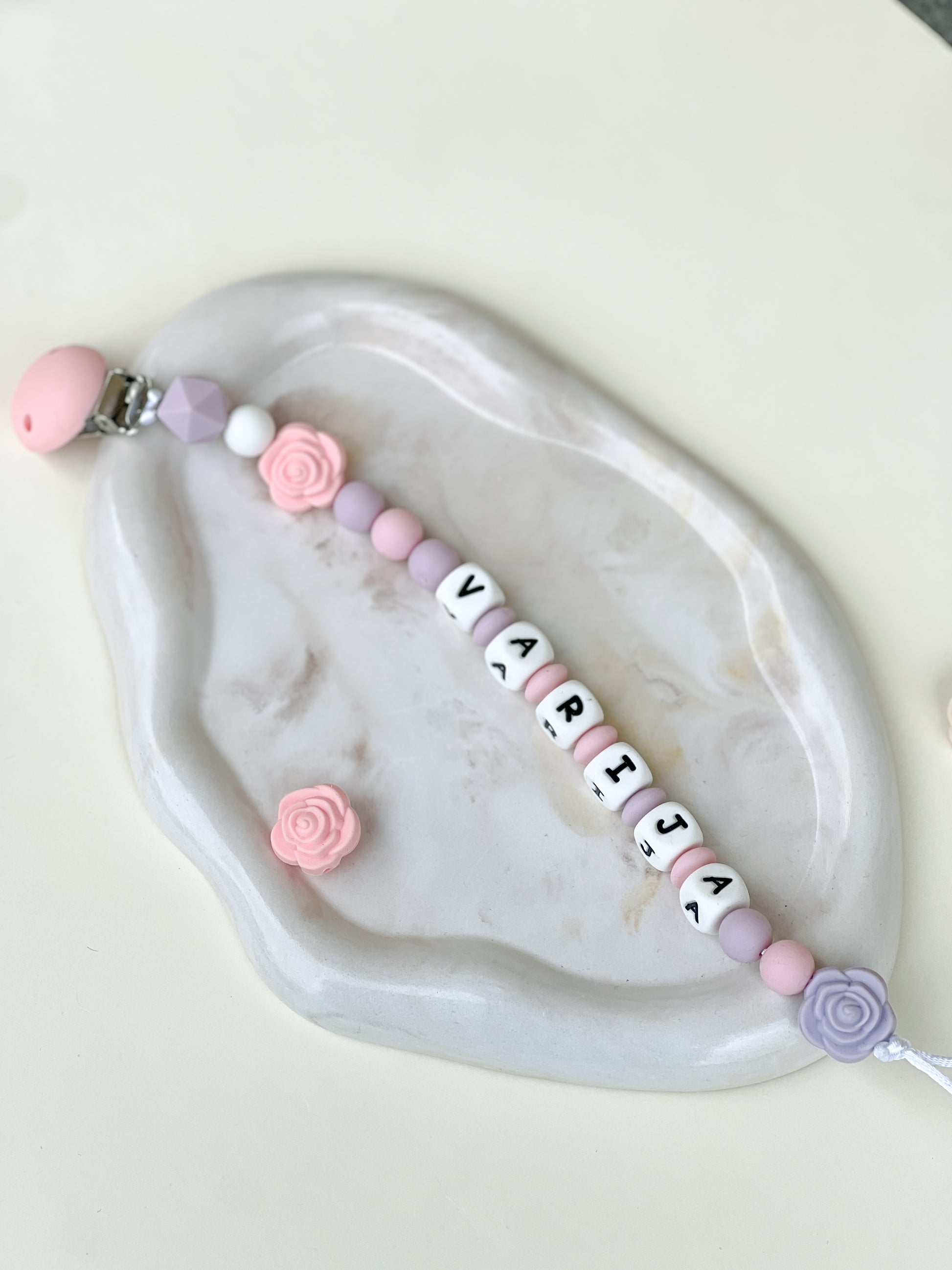 Naš lančić sa imenom deteta, ukrašen okruglom silikonskom klipsom, pažljivo je ručno izrađen sa ljubavlju prema svakom detalju.
