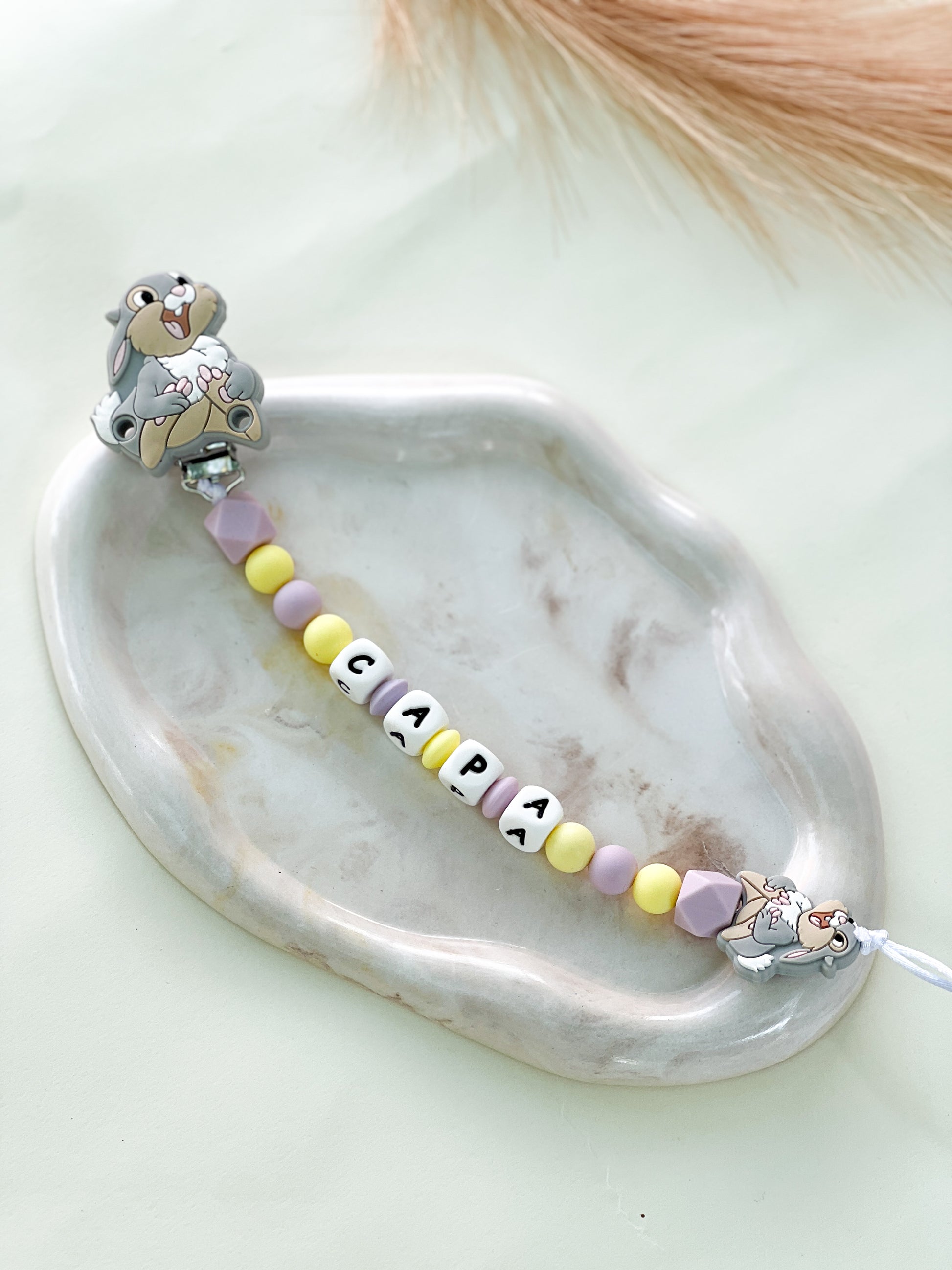 Naš lančić sa imenom deteta, ukrašen okruglom silikonskom klipsom, pažljivo je ručno izrađen sa ljubavlju prema svakom detalju.
