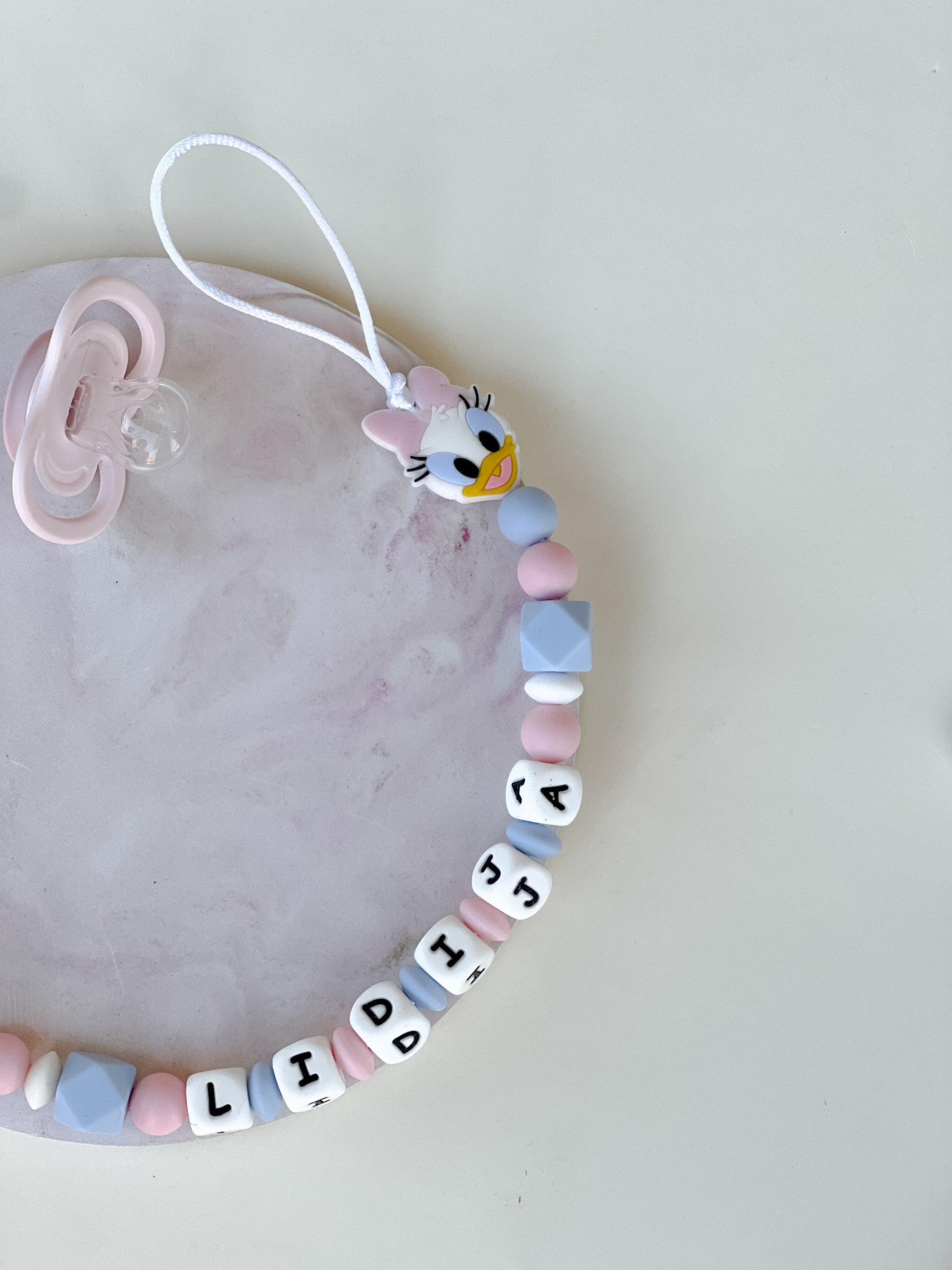 Lančić sa klipsom u obliku omiljenih dečjih junaka unosi radost i zabavu u svakodnevicu vašeg deteta. Klipsa sa crtanim likom nije samo dekorativna, već i funkcionalna, čineći cucle lako dostupnim i sprečavajući njihov gubitak. Ovaj lančić je odličan izbor za roditelje koji žele praktičan dodatak sa daškom mašte.