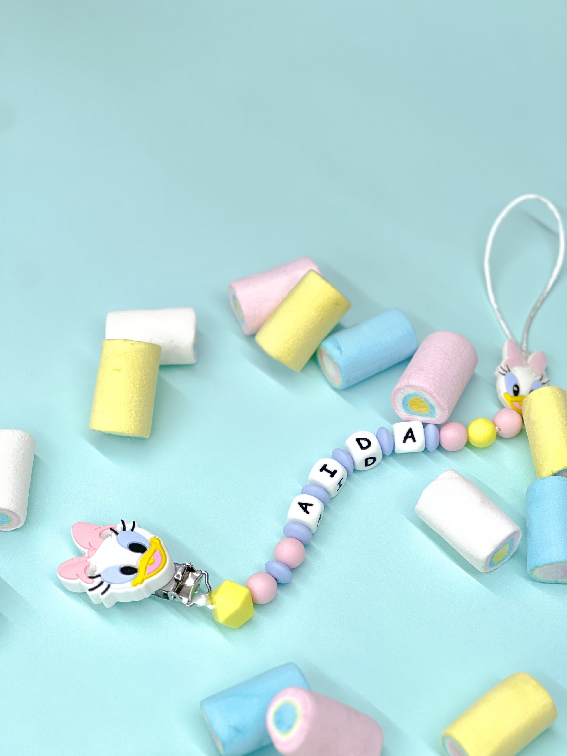 Lančić sa klipsom u obliku omiljenih dečjih junaka unosi radost i zabavu u svakodnevicu vašeg deteta. Klipsa sa crtanim likom nije samo dekorativna, već i funkcionalna, čineći cucle lako dostupnim i sprečavajući njihov gubitak. Ovaj lančić je odličan izbor za roditelje koji žele praktičan dodatak sa daškom mašte.